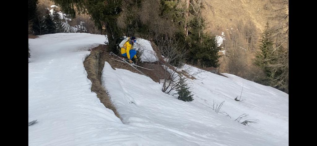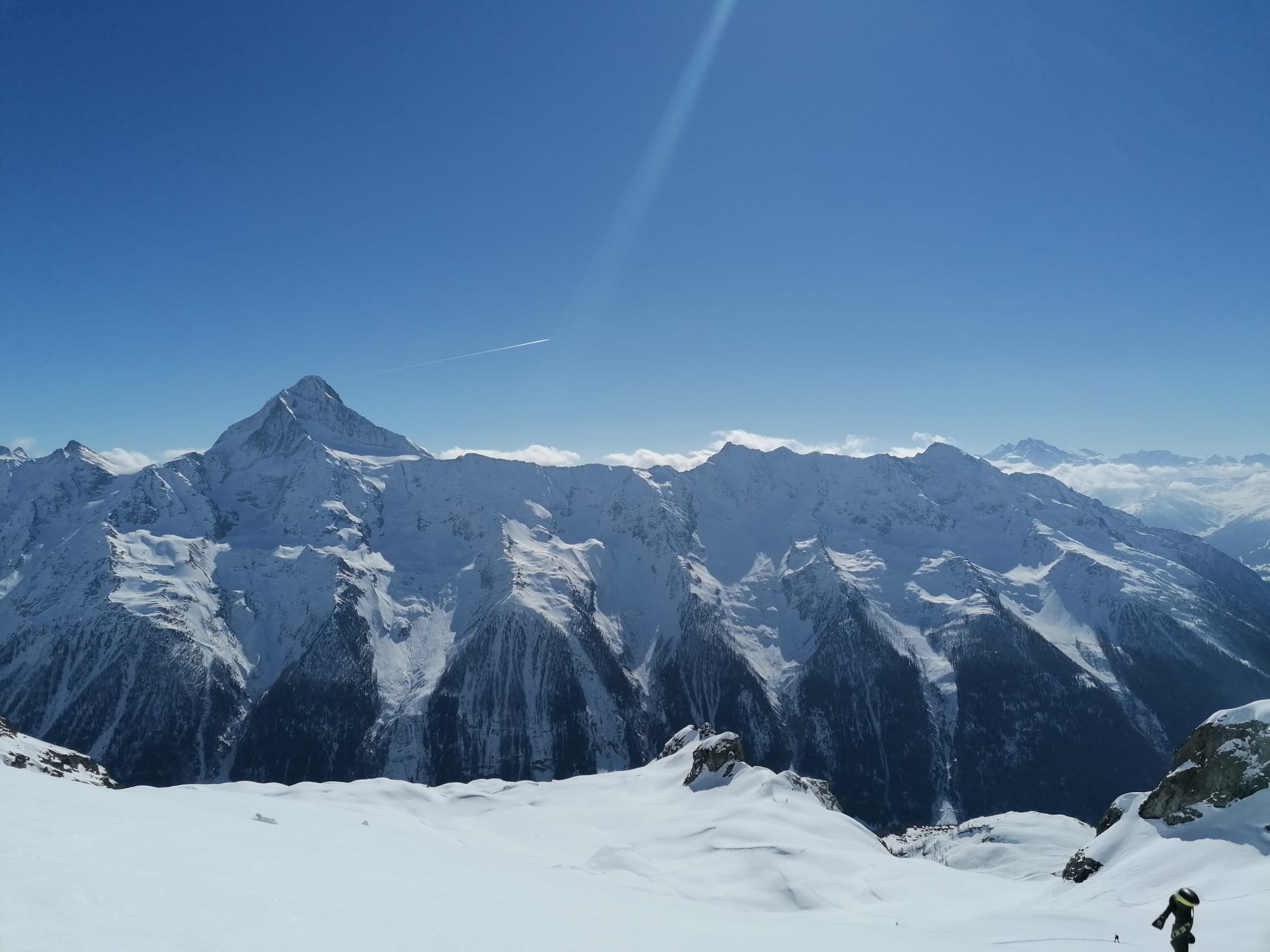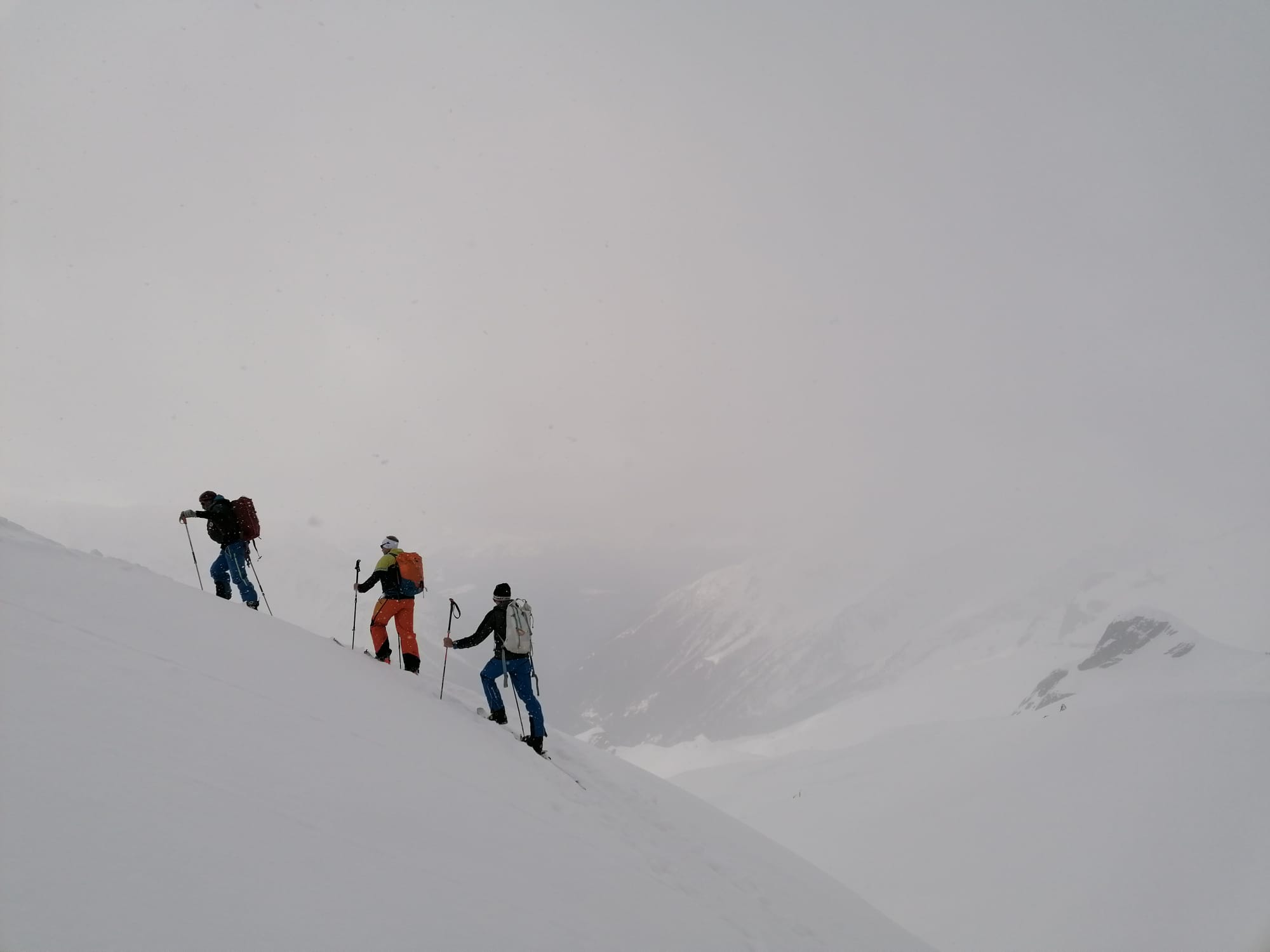 Am Sonntagmorgen bringt uns die Bahn wieder hoch. Heute geht’s zum Petersgrat. Leichter Schneefall, Nebel und Sonne begleitet uns beim Aufstieg. Nach der langen Abfahrt über das Uissere Tälli übten wir noch den Einkehrschwung. Coronakonform genossen wir den Kaffee und Kuchen im alten Hotelgarten der Fafleralp. Umgestürzte Bäume und viel Äste sind Zeugen eines Lawinenniedergangs direkt vor dem Hotel. Schon bald sind wir im Postauto Richtung Wiler, aber wir sind ja am Freeriden und so liegt noch eine Abfahrt drin. Mit der Bahn hoch und schon sind wir wieder auf dreitausend Meter. Am Nachmittag geniessen wir noch einmal besten Sulz vom Hockenhorn bis hinunter nach Ferden.