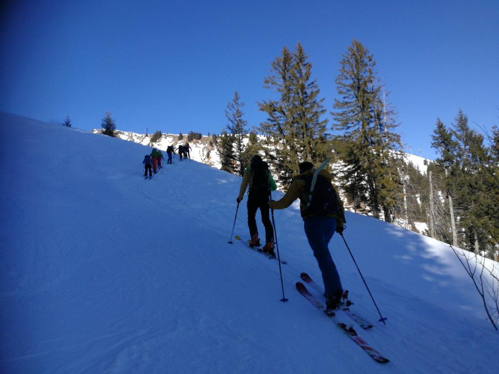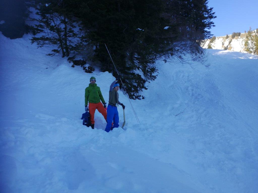 Mehrheitlich setzte sich die Gruppe von Leuten „ännet dem Brünig„ zusammen. Nichts desto trotz, erst gabs mal einen Kaffee in der Bergstation. Theorie, was uns alles erwartet. So konnten wir gestärkt in den Praxisteil übergehen. Nur genug Schnee finden, war fast das grösste Problem. Nachdem wir uns in zwei Teams aufgeteilt hatten, konnten wir uns in Suchen und Finden üben.