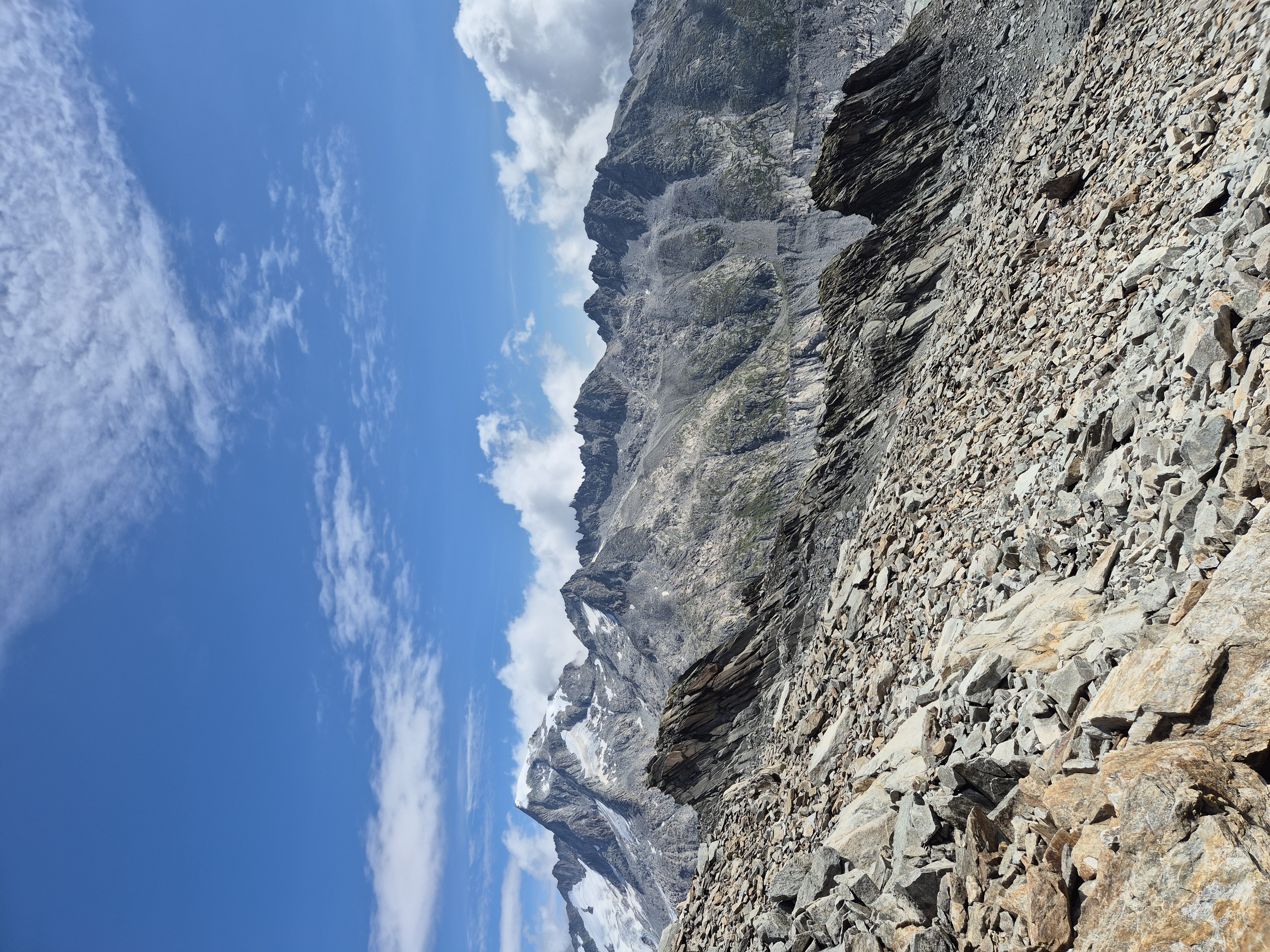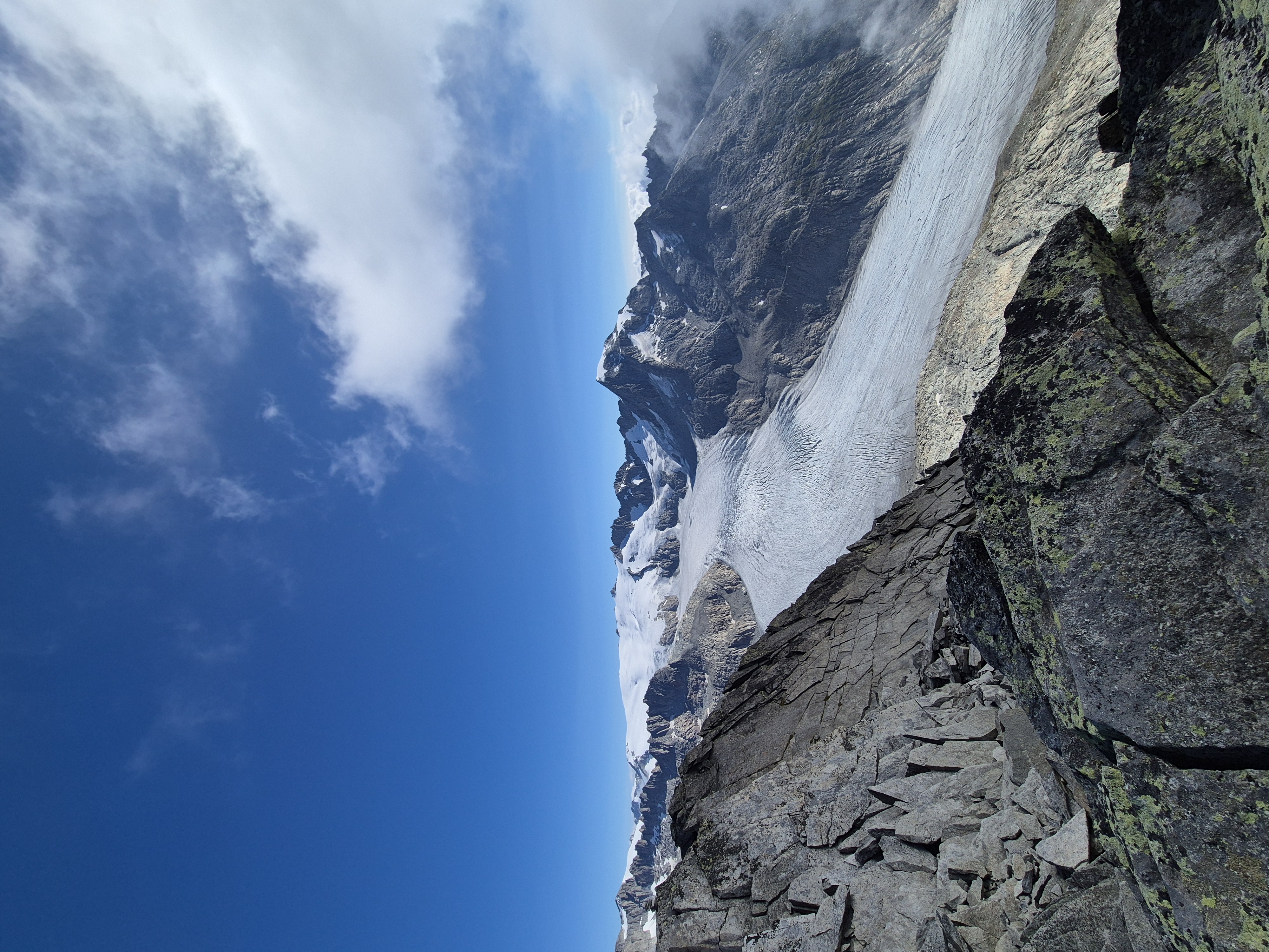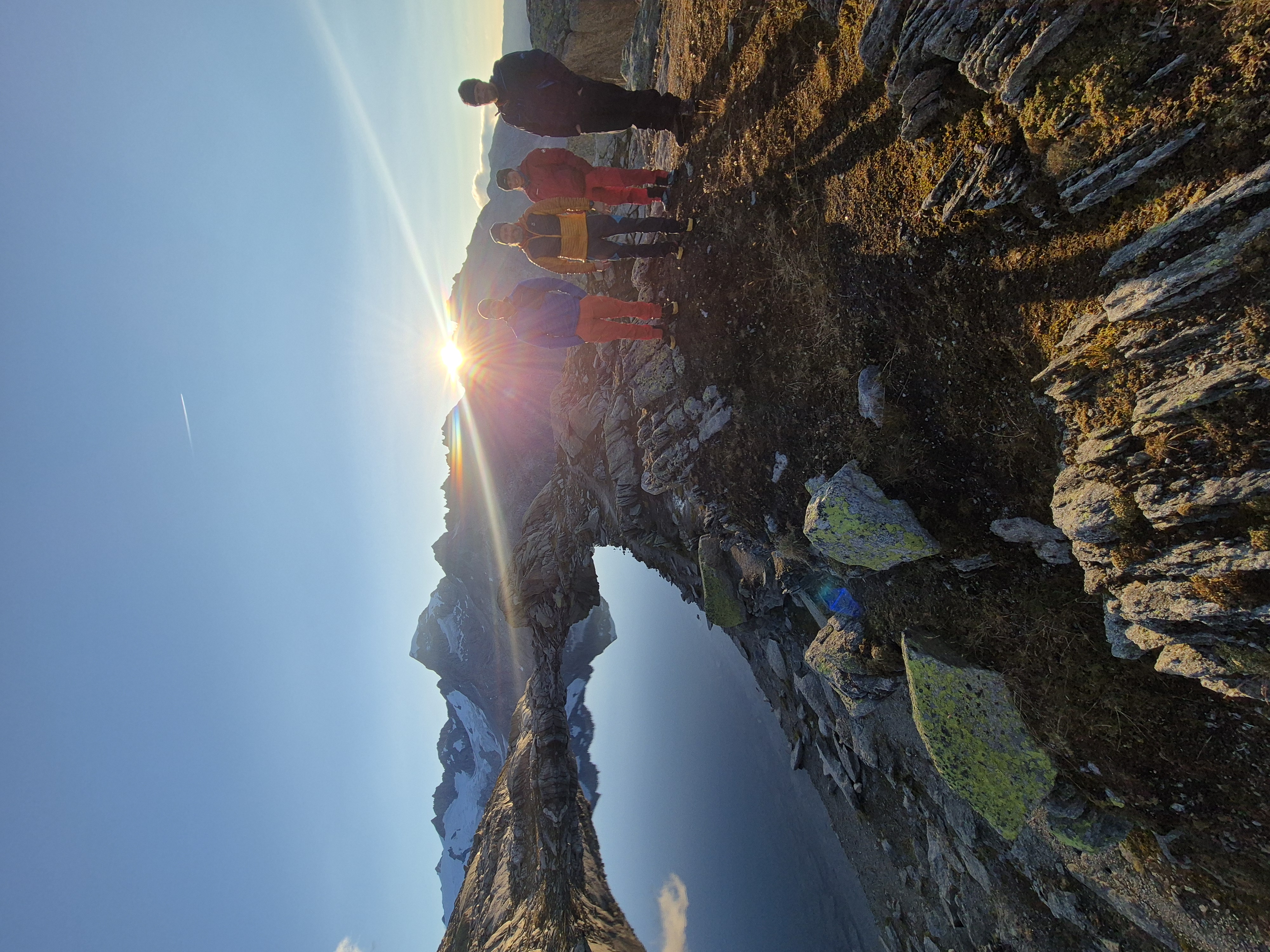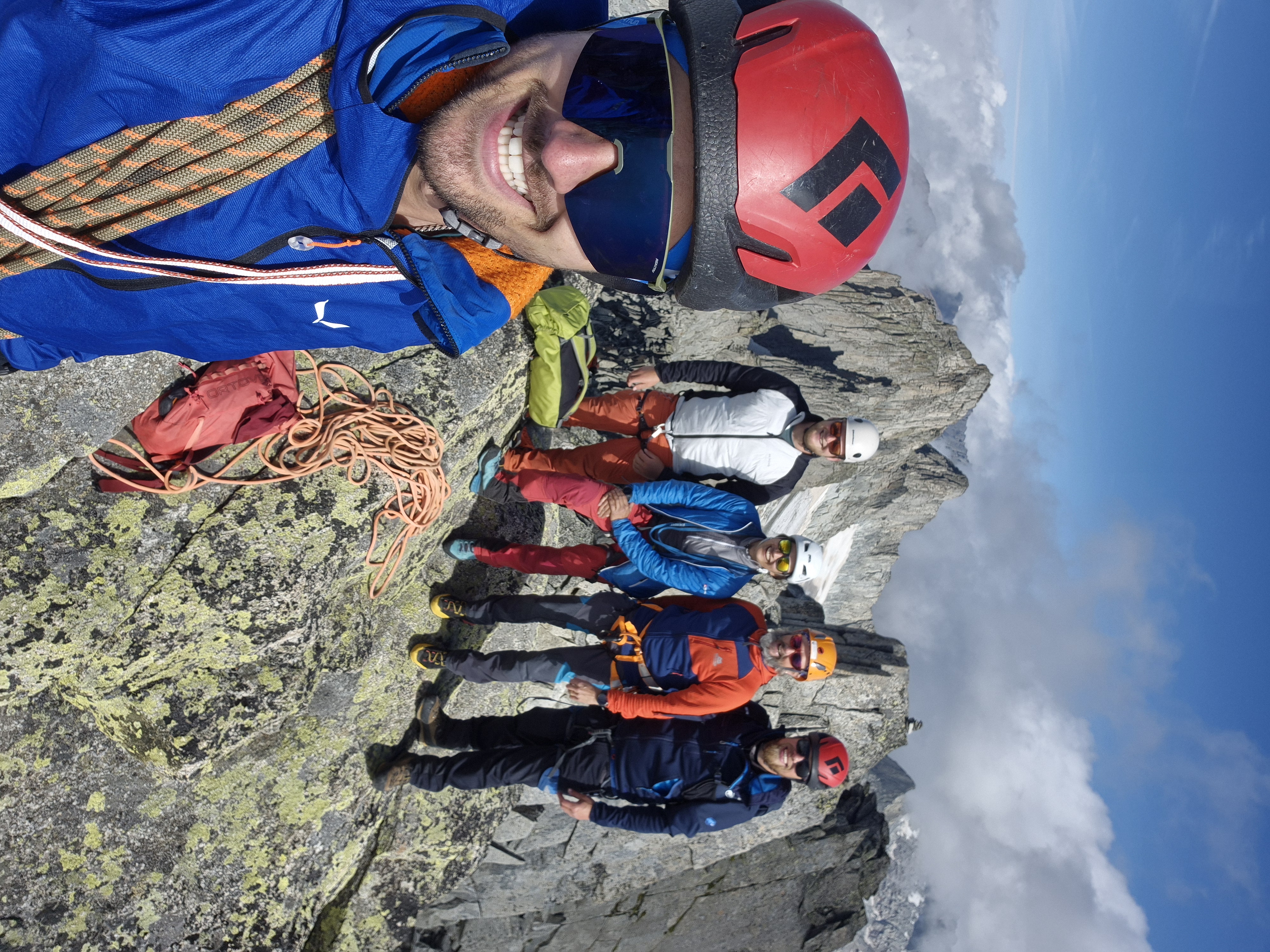 Ab hier verlassen wir den Wanderweg und steigen nun weglos über Fels und Geröll hinauf zum Einstieg des Südwestgrates. Von dort klettern wir in wunderschöner Gratkletterei weiter auf den Gipfel. Oben auf dem Gipfel angekommen, eröffnet sich uns ein grandioses Panorama auf den Rohnegletscher und die umliegenden Berge. Neue Bewertung: «4 Sterne» Wir geniessen die Aussicht und lassen die Lungerer noch ein paar Spässe machen. Mit Stolz im Herzen treten wir den Abstieg an. Zurück am Grimselpass wartet die Krönung: ein Stück Kuchen im Restaurant. Das hebt natürlich auch die Tourenbewertung. Endstand 5 Sterne und so endet unsere erste erfolgreiche Tour als Tourenleiter/innen.