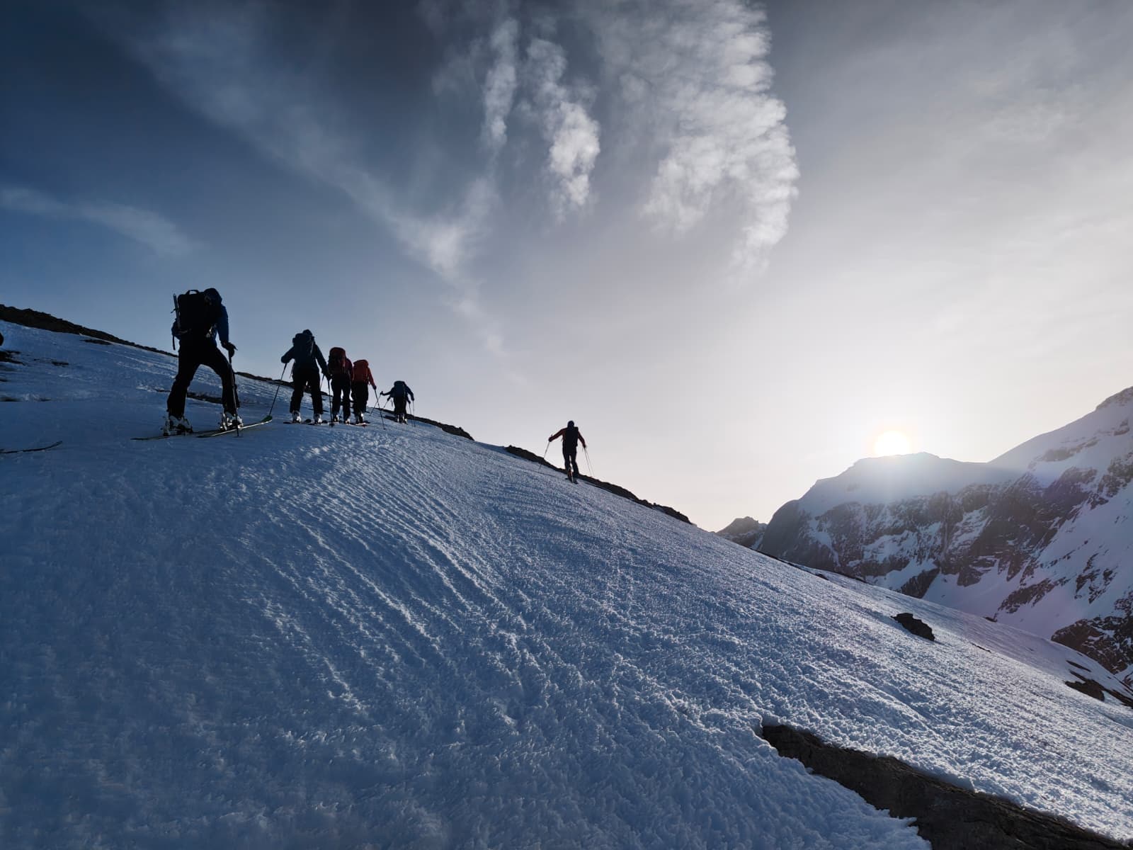 So schwebte die Gondel über unsere Köpfe hinweg und wir fellten brav an. Unser Tagesziel war das Niesenhorn (ist kein Verschreiber, ein solches Horn steht dort tatsächlich) mit der rassigen Abfahrt zur Wildhornhütte. Ohne gross zu hetzen wurde das Niesenhorn angesteuert. Für die Abfahrt erwartete uns perfekter Sulz und in der Hütte ein super Znacht.