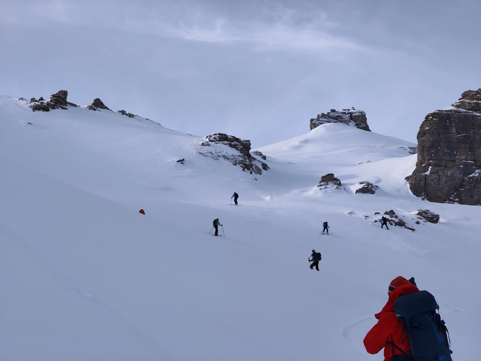 Für den letzten Tag war der Wildstrubel mit der Abfahrt übers Ammertetäli in die Lenk auf dem Programm. Dank Konis Ortskenntnis gleiteten wir über die sonst schier unendliche Fläche der Plaine Morte bis an den Fuss des Wildstrubels.