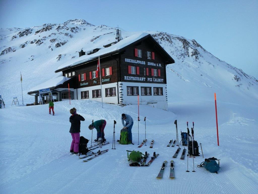 Auf dem Oberalppass angekommen, schnürten wir uns die Skier an und unser Bergführer Reto Schild führte uns sicher durch das Val Val. Der steile Aufstieg zu den Giuvstöckli war, für die etwas ungeübteren Teilnehmer, eine grosse Herausforderung! 😉 Oben angekommen, konnten wir uns dank einer längeren Pause erholen und die Aussicht geniessen. Nach einer kurzen Abfahrt stiegen wir zur Forcla Piz Nair auf. Die Felle wurden wieder von den Skiern genommen und eine steile Abfahrt zum Etzlibach wartete auf uns. Nach einem kurzen Aufstieg erreichten wir unser Nachtlager, die Etzlihütte. An dieser Stelle ein grosses Dankeschön an René, der die Hütte extra unseretwegen aufgemacht und bewirtet hat! Bis zum Abendessen wurde getrunken und diskutiert und der eine oder andere Teilnehmer, der eine kurze Nacht in den Knochen hatte, legte sich aufs Ohr. René zauberte uns ein köstliches Abendessen auf den Tisch, bei dem niemand mit Hunger ins Bett musste.